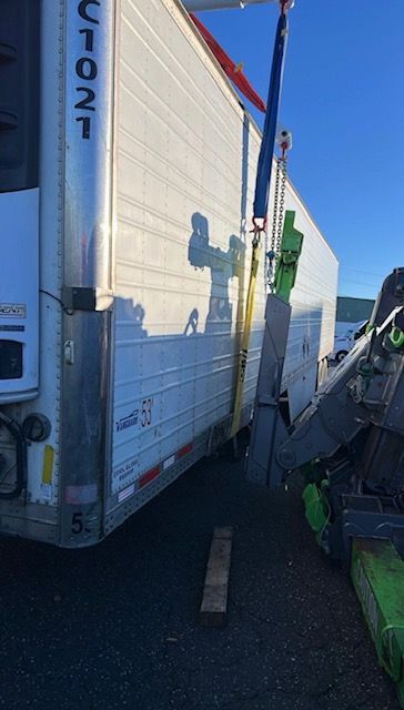 Here’s a lift to start your Monday. Flanagan’s Towing was called in after a refrigerated trailer became lodged inside the back of another trailer, creating a challenging and delicate recovery situation. Once the initial unit was cleared and towed away, our team got to work on safely removing the damaged trailer.